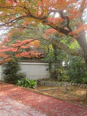 養源院は、参道脇にカエデがゆるやかな坂を上るように植えられています。
